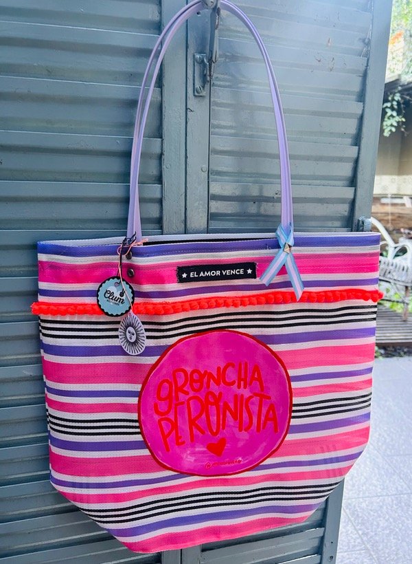 Bolsa de compras de tela plástica. Ideal playita, ideal para el mate y para las compras! Tiene bolsillo interno para el celu, y mosquetón para el llavero. Mide 40 x 38. Tiene correa larga.