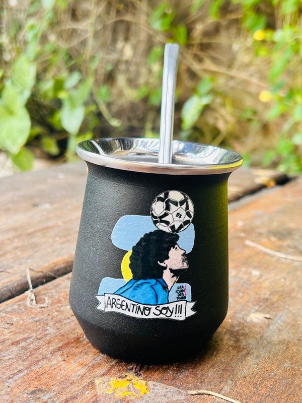 Mate de acero inoxidable color decorado en dtf, incluye bombilla.