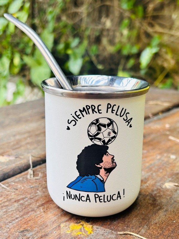 Mate de acero inoxidable color decorado en dtf, incluye bombilla.