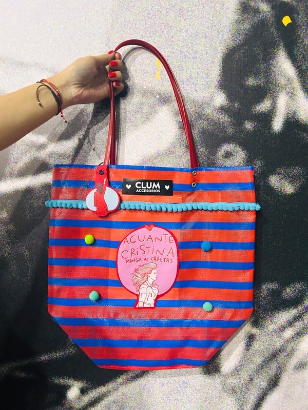 Bolsa de compras de tela plástica. Ideal playita, ideal para el mate y para las compras! Tiene bolsillo interno para el celu.