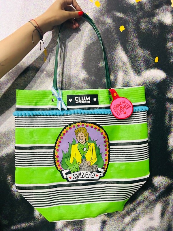Bolsa de compras de tela plástica. Ideal playita, ideal para el mate y para las compras! Tiene bolsillo interno para el celu.