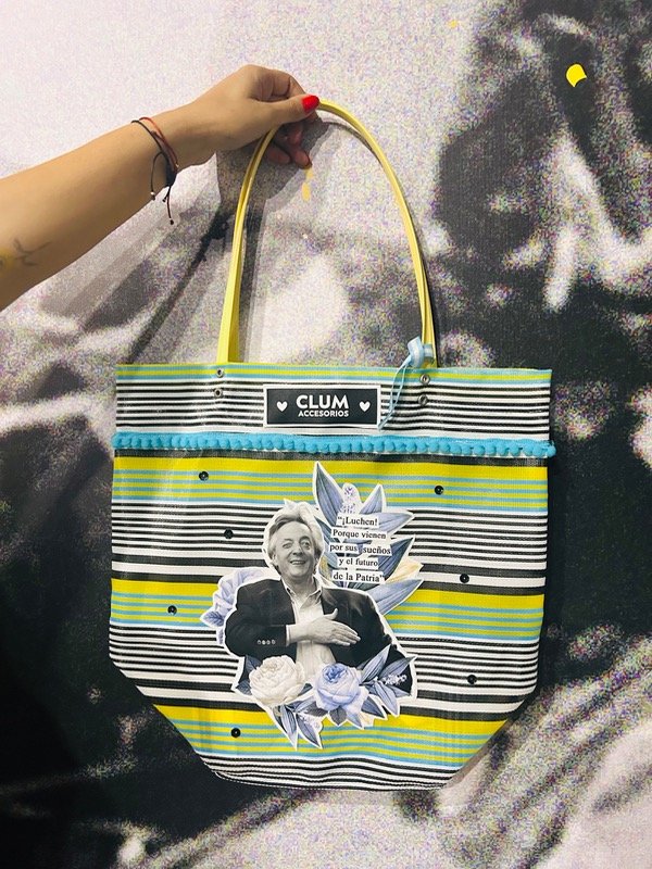 Bolsa de compras de tela plástica. Ideal playita, ideal para el mate y para las compras! Tiene bolsillo interno para el celu.